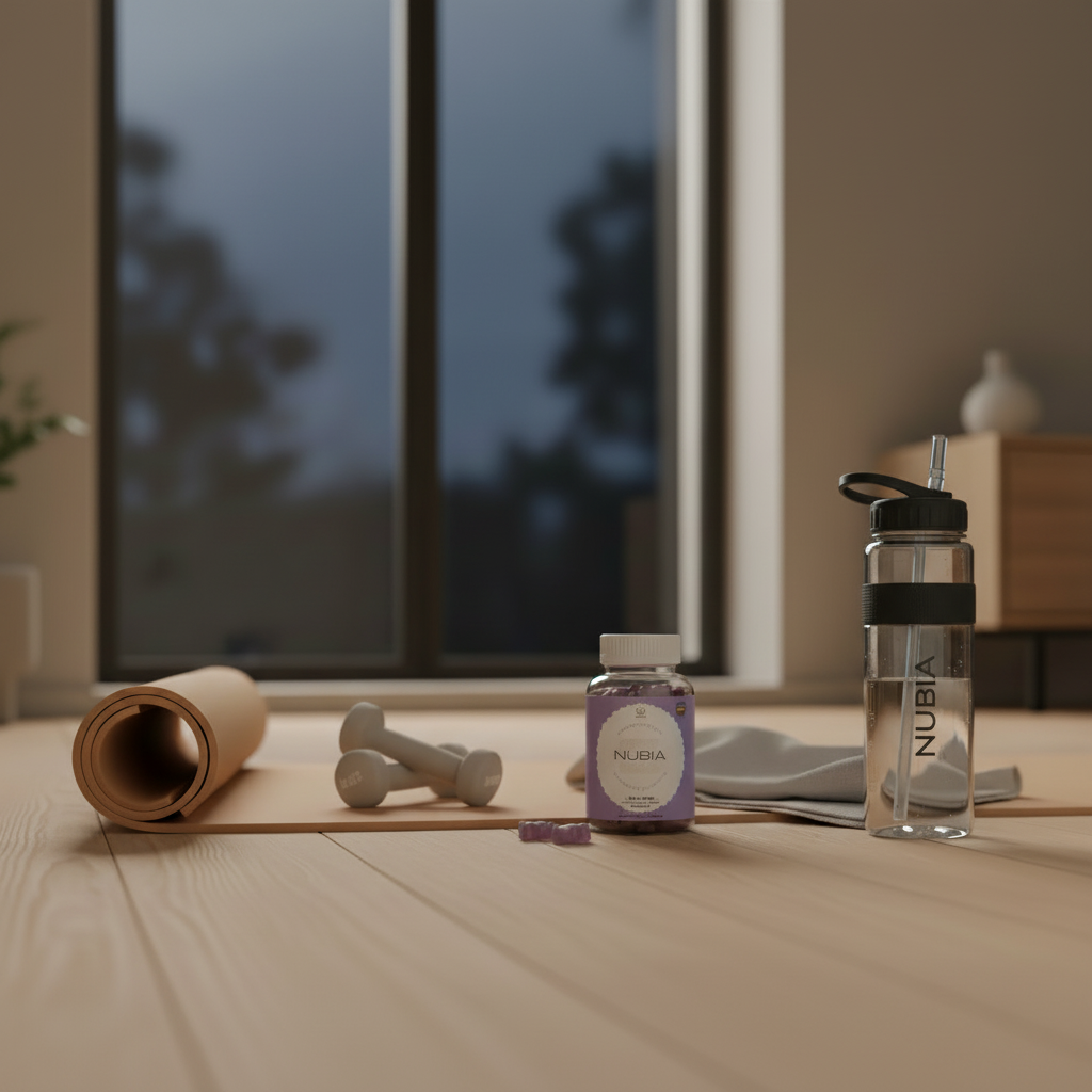 Lorsque le corps a donné, la nuit devient un moment clé. Nubia accompagne naturellement la détente musculaire et favorise un endormissement plus fluide grâce à sa formule complète. Le magnésium contribue à une fonction musculaire normale, tandis que les vitamines B6 et B9 participent au bon fonctionnement du système nerveux. Idéal pour celles et ceux qui souhaitent transformer leur sommeil en véritable temps de récupération.